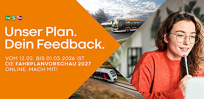 Wir freuen uns über deine Ideen und Rückmeldungen zum aktuellen Thema! Sie helfen uns dabei, die richtigen Entscheidungen für die Zukunft zu treffen und dabei möglichst alle Sichtweisen und Auswirkungen zu berücksichtigen. Da wir vor allem im Bahnnetz mit vielen verschiedenen Partnern zusammenarbeiten und oftmals langlaufende Verträge abgeschlossen haben, werden wir nicht jede Änderung schnell umsetzen können. Deine Ideen werden dennoch sorgfältig geprüft und können langfristig wichtige Impulse für unsere Weiterentwicklung geben.